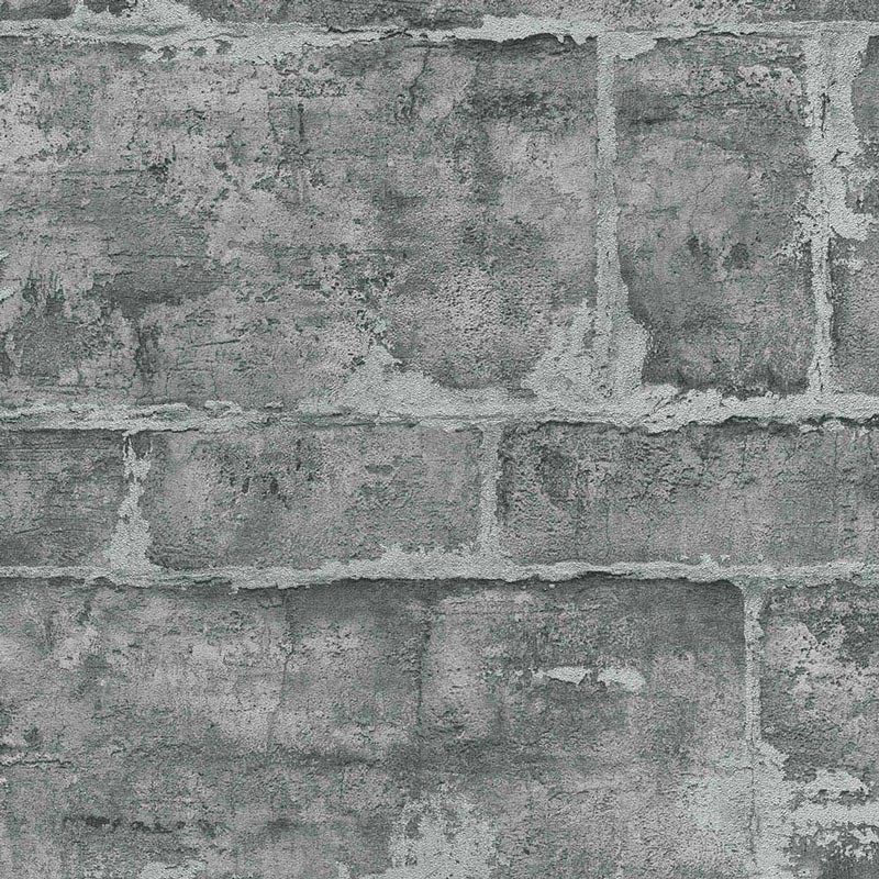 Wandtapete Naturstein anthrazitgrau glänzend von Erismann, Kollektion Fashion For Walls. Vliestapete waschbeständig, Maße: 53 cm x 10 Meters.