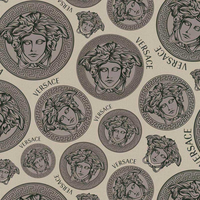 Tapete Versace Medusa elfenbein glänzend Hochwertiges von Versace, Vinyl-Qualität und abwaschbar. Maße: 70 cm x 10 Meters