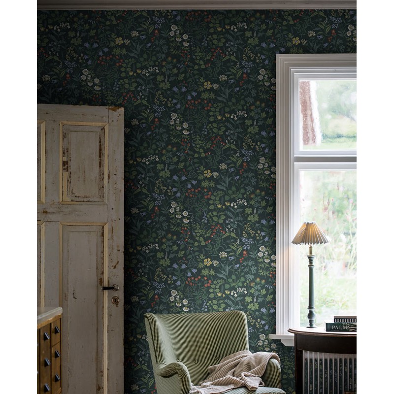 Tapete Wiesenblumen floral romantisch mitternachtsblau Stil von Borastapeter, Alla Tiders Hus Kollektion. Vliestapete waschbeständig, Maße: 53 cm x 10 Meters.
