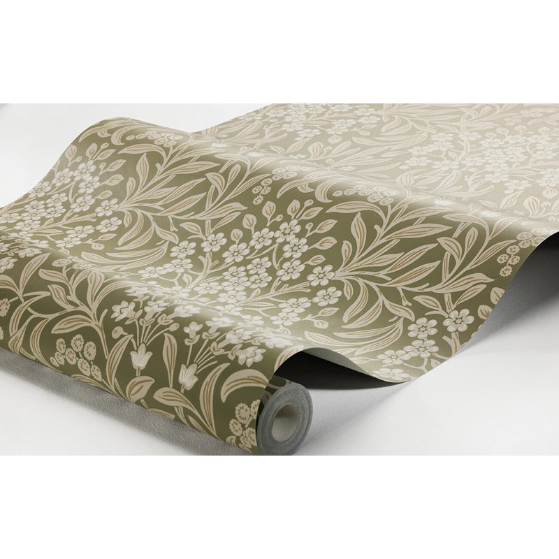 Tapete floral geschwungen Arts and Crafts beige Stil von Borastapeter, Alla Tiders Hus Kollektion. Vliestapete waschbeständig, Maße: 53 cm x 10 Meters.