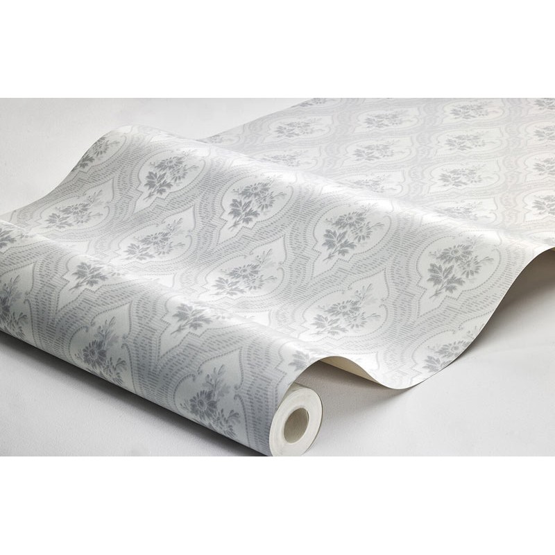Tapete französisch elegant floral Medaillon grau weiß Stil