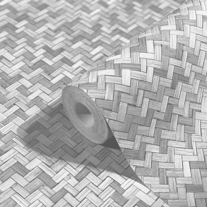 Anthrazitgraue Bambus geflochtene Korbgeflecht Tapete, ideal für stilvolle Innenräume. Marburg Botanica 33310.