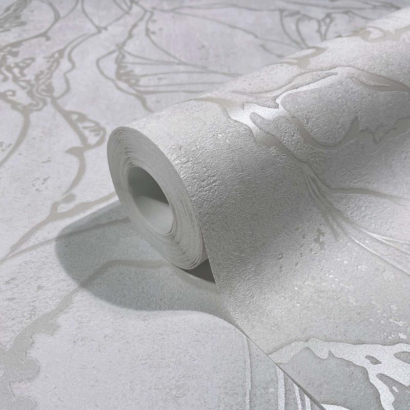 Tapete abstrakt zeitgenössisch in Grau und Silber Beton, ideal zum Hervorheben Ihrer Wände. Marburg City Glow 34254.