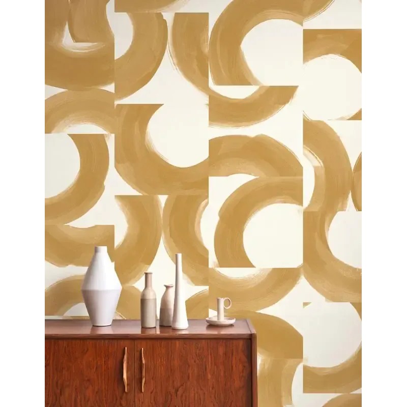 Künstlerische tapete mit abstrakten beigen kreisen, eine dezente Farbpalette für stilvolle und helle Räume.