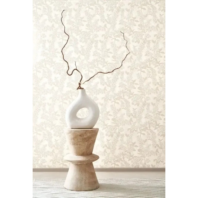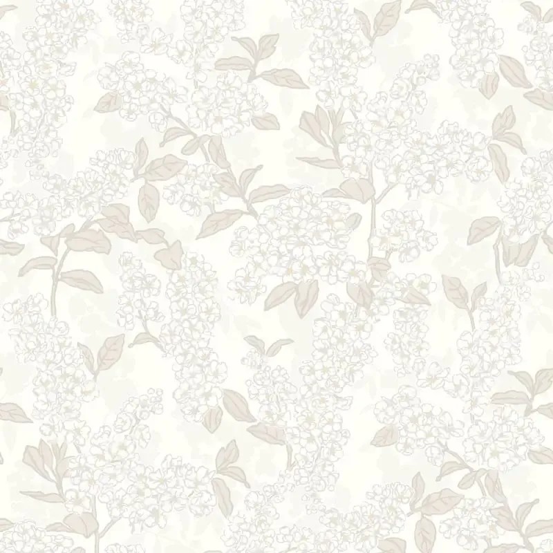 Moderne japanische tapete in weiß mit japanischen blumen, in ruhigen Farben, die eine harmonische Atmosphäre schaffen.