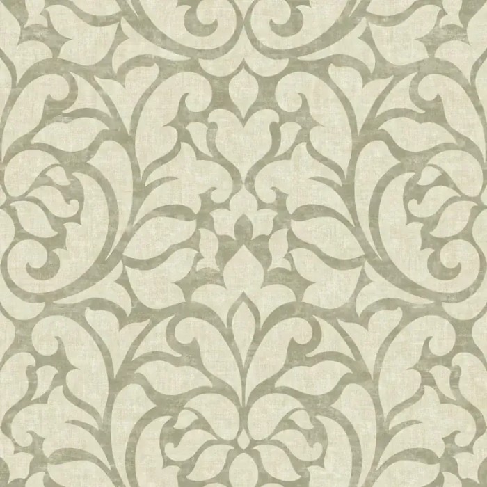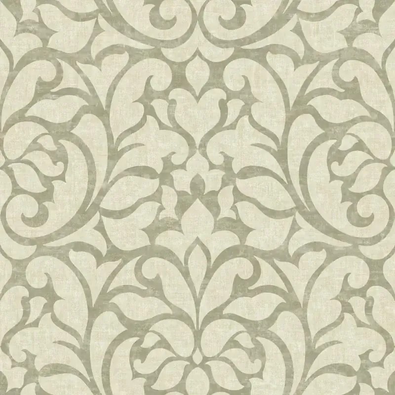 Beigefarbene damasttapete mit leinenoptik-ornamenten, ideal für moderne Wohn- oder Schlafzimmer mit ruhiger Ausstrahlung.