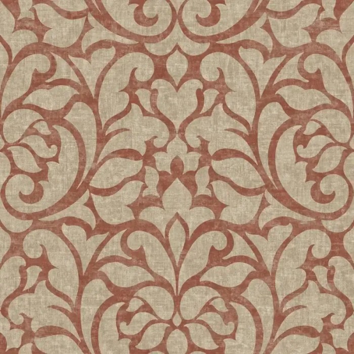 Beigefarbene damasttapete mit leinenoptik-ornamenten, ideal für moderne Wohn- oder Schlafzimmer mit ruhiger Ausstrahlung.