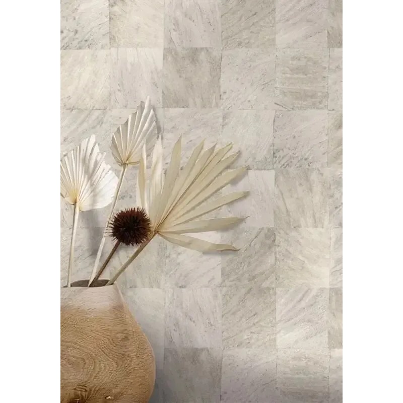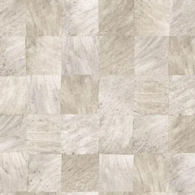Mosaik Tapete exotische Blätter Holzeffekt grau von Casamance, Kollektion Textures Vegetales. Abwaschbare Vinyl-Qualität, Maße: 70 cm x 10 m.