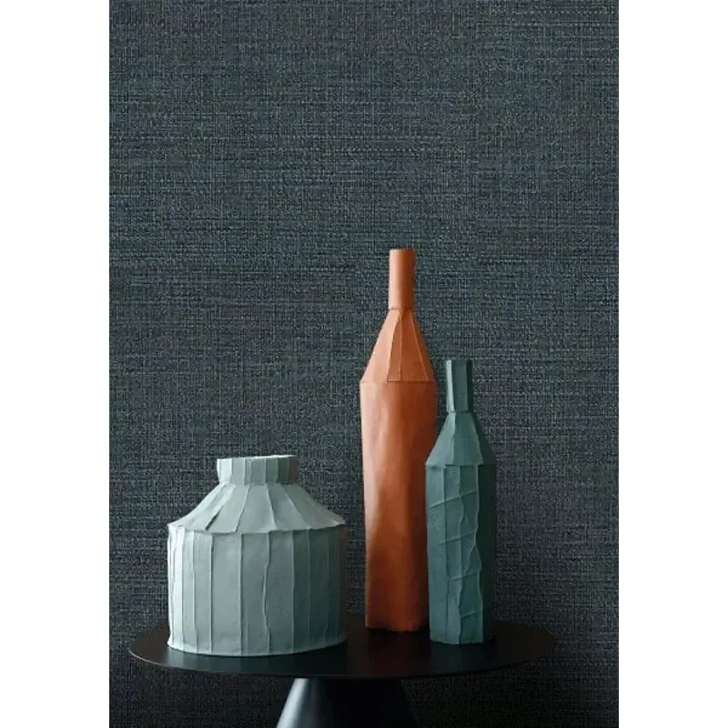 Raffia Tapete grau gefärbt natürlicher Effekt von Casamance, Kollektion Golfe Du Bengale. Abwaschbare Vinyl-Qualität, Maße: 70 cm x 10 m.