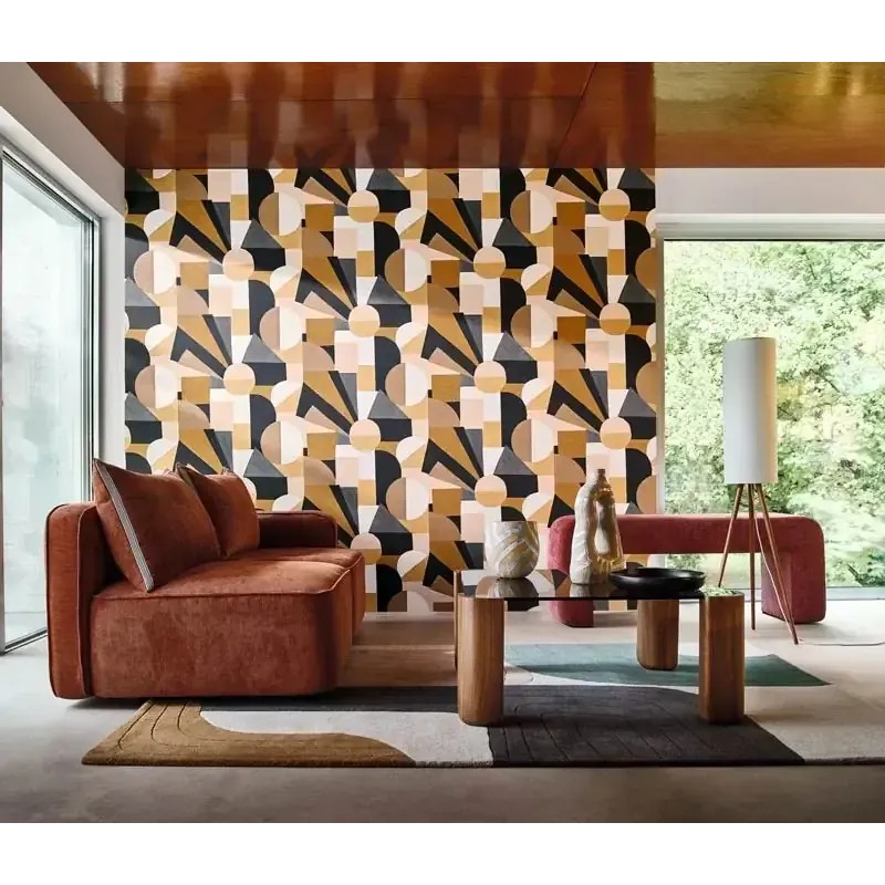Geometrische Tapete bunt inspiriert von Delaunay von Casamance, Kollektion Mouvements. Abwaschbare Vinyl-Qualität, Maße: 70 cm x 10 m.