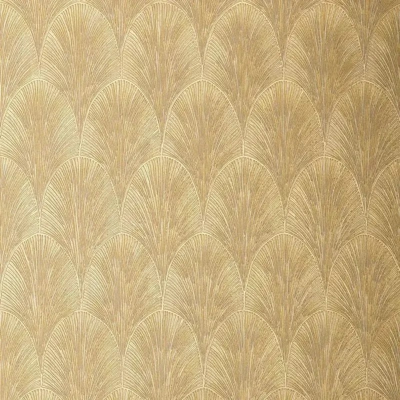 Palmenblätter Tapete bronze-gold metallisch von Casamance, Kollektion Textures Metalliques. Abwaschbare Vinyl-Qualität, Maße: 70 cm x 10 m.