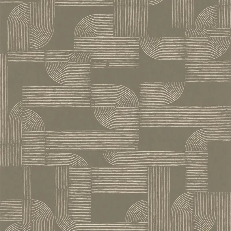 Jugendstil Tapete geometrisch khakigrün-gold von Casamance, Kollektion Square Jasmin. Abwaschbare Vinyl-Qualität, Maße: 53 cm x 10 m.