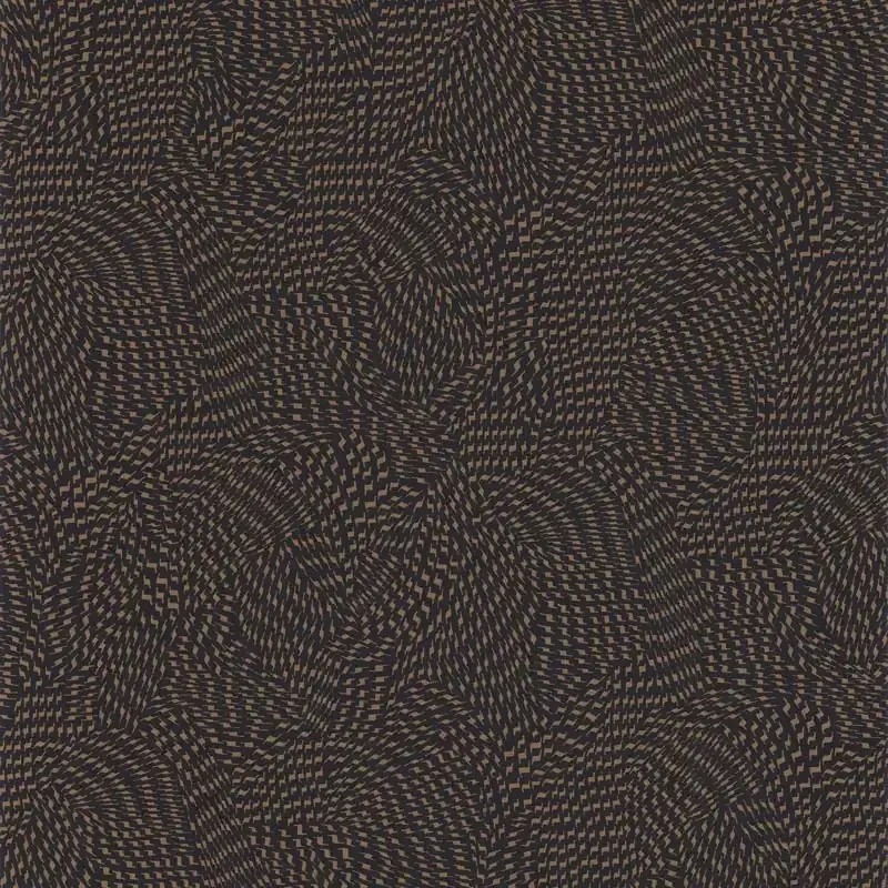 Abstrakte Tapete schwarz-kupfer matter Glanz von Casamance, Kollektion Square Jasmin. Abwaschbare Vinyl-Qualität, Maße: 53 cm x 10 m.