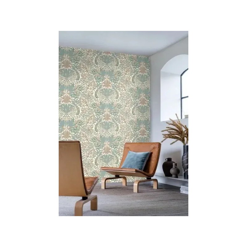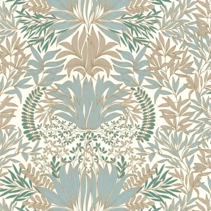 Ornamentale florale Jugendstil Tapete grün von Casamance, Kollektion Square Jasmin. Abwaschbare Vinyl-Qualität, Maße: 70 cm x 10 m.