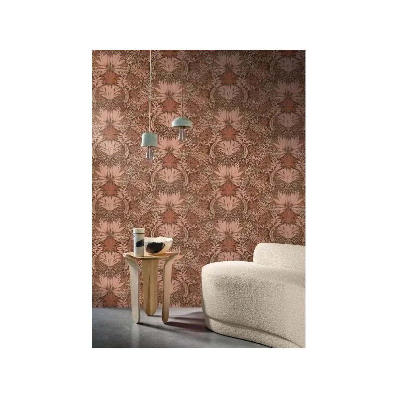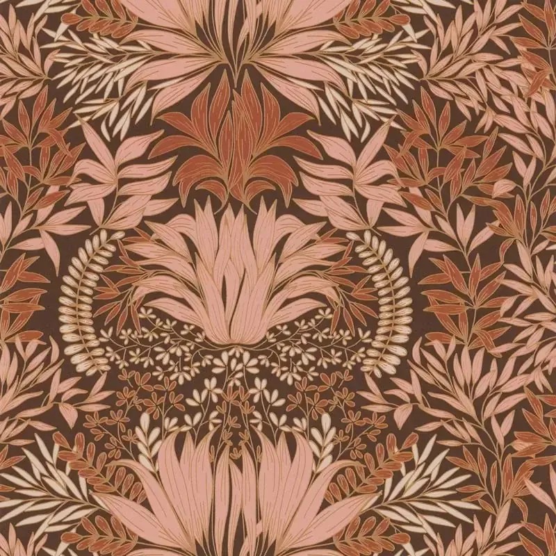 Ornamentale florale Jugendstil Tapete braun-rosa von Casamance, Kollektion Square Jasmin. Abwaschbare Vinyl-Qualität, Maße: 70 cm x 10 m.