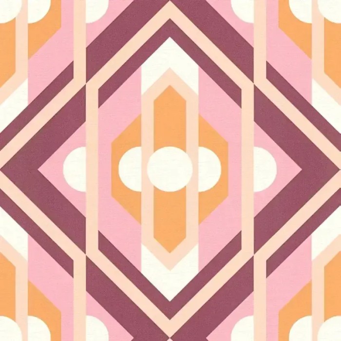 Dekorativer Stil, der sich an verschiedene Bereiche des Hauses anpasst. Tapete geometrisch 70er Jahre Retro-Stil mehrfarbig As Creation Retro Chic 395314.