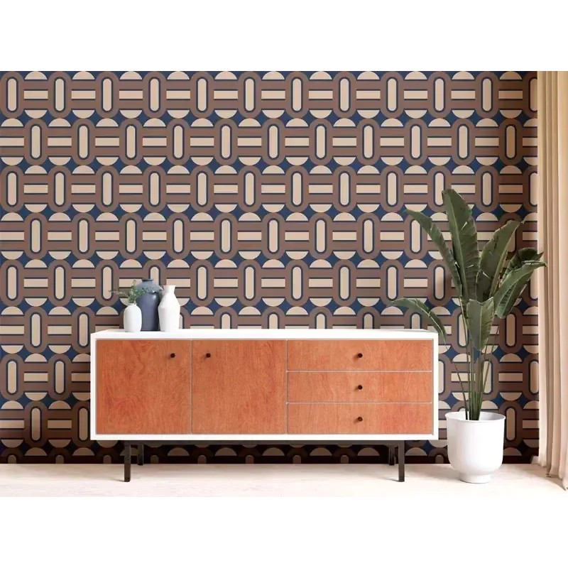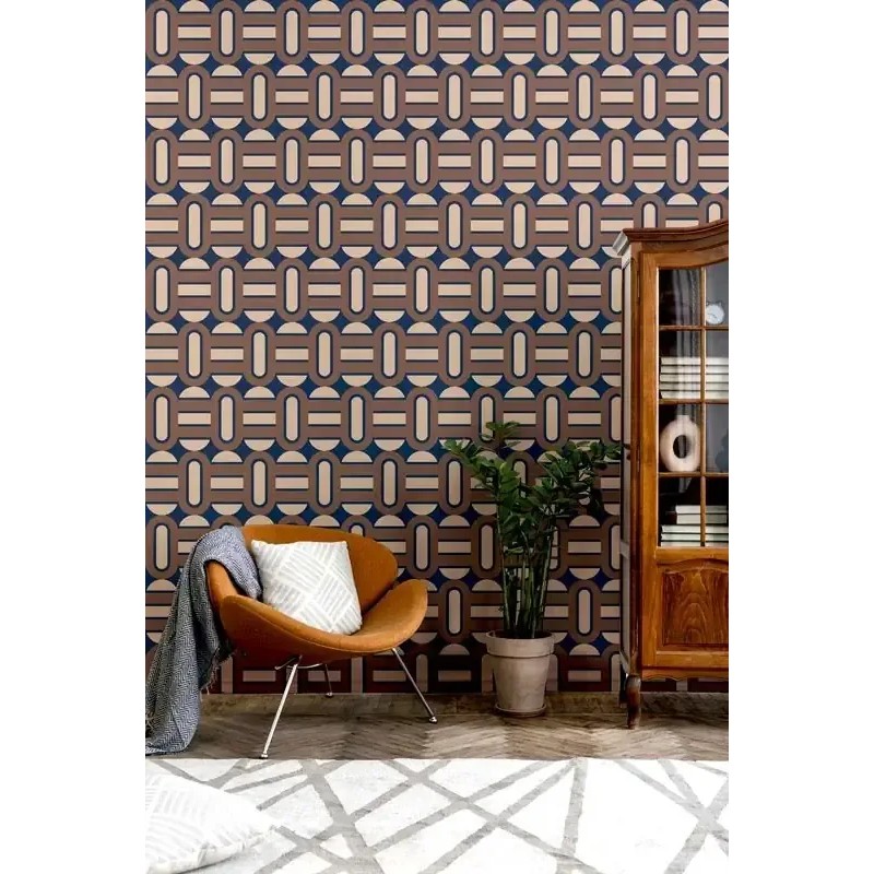 Tapete geometrisch retro 70er Jahre rosa, beige, Dekorativer Stil, der sich an verschiedene Räume des Hauses anpasst. As Creation Retro Chic 395365.