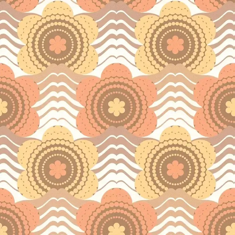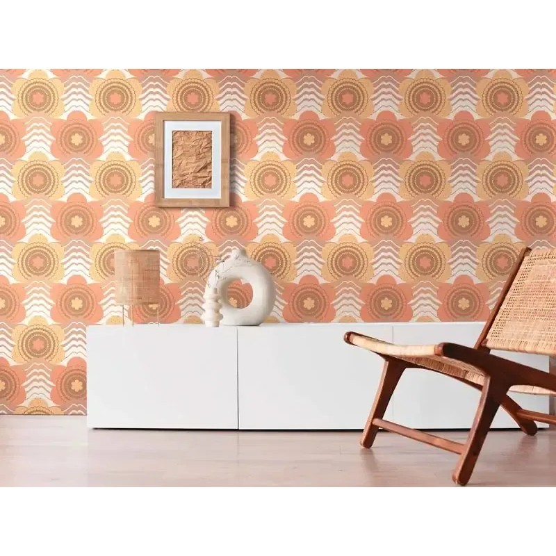 Ein dekorativer Vorschlag für Räume mit Persönlichkeit. Tapete Retro-Stil der 70er Jahre in Orange, Gelb As Creation Retro Chic 395394.
