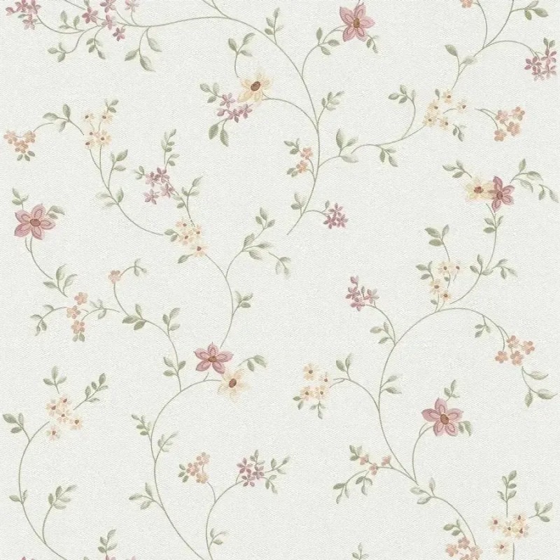 Tapete romantischer Blumenstil in Pastelltönen, ideal, um Ihren Wänden ein frisches und elegantes Aussehen zu verleihen. As Creation Maison Charme 390712.
