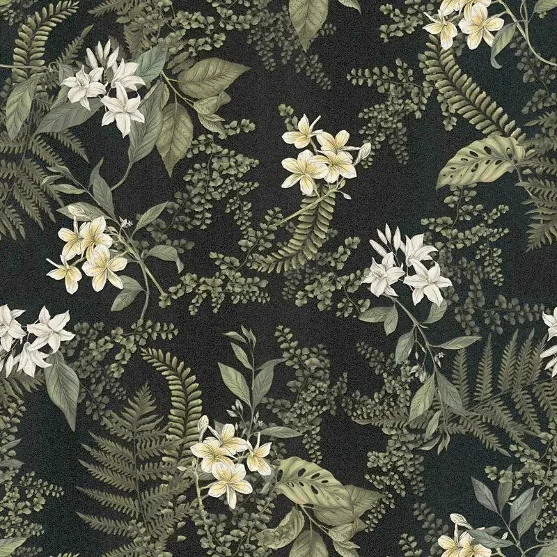 Tapete Blumen und Farne in Weiß und Grün, Ein dekorativer Vorschlag für Räume mit Persönlichkeit. As Creation Drawn Into Nature 394243.