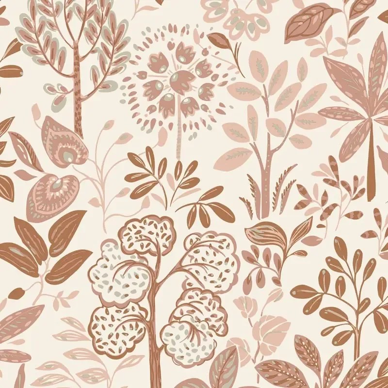 Wohnzimmertapete mit Boho-Blumen in Terrakotta-Braun. Caselio Essentiel, waschbare Vliestapete. Maße: 53 cm x 10 metros