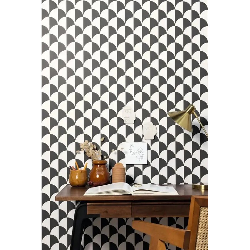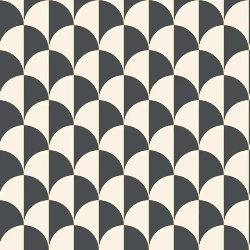 Retro Tapete mit ovalen Kreisen schwarz weiß. Caselio Moonlight , waschbare Vliestapete. Maße: 53 cm x 10 Meter