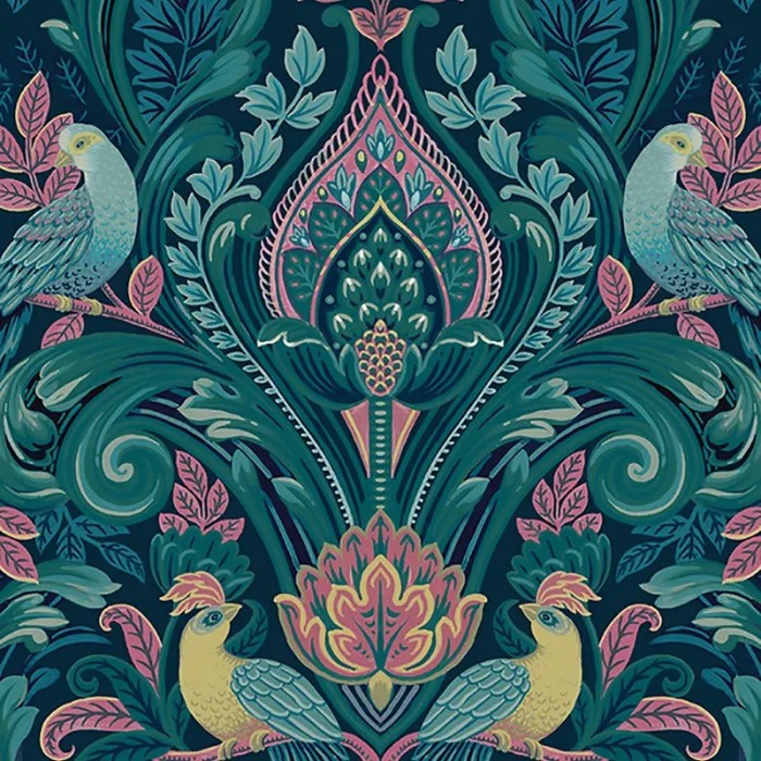 Romantischer ornamentaler grüner Blumenstrauß Tapete. Schaffen Sie eine gemütliche Atmosphäre für stilvolle Räume. Inspiriert von klassischen Mustern mit modernem Touch.