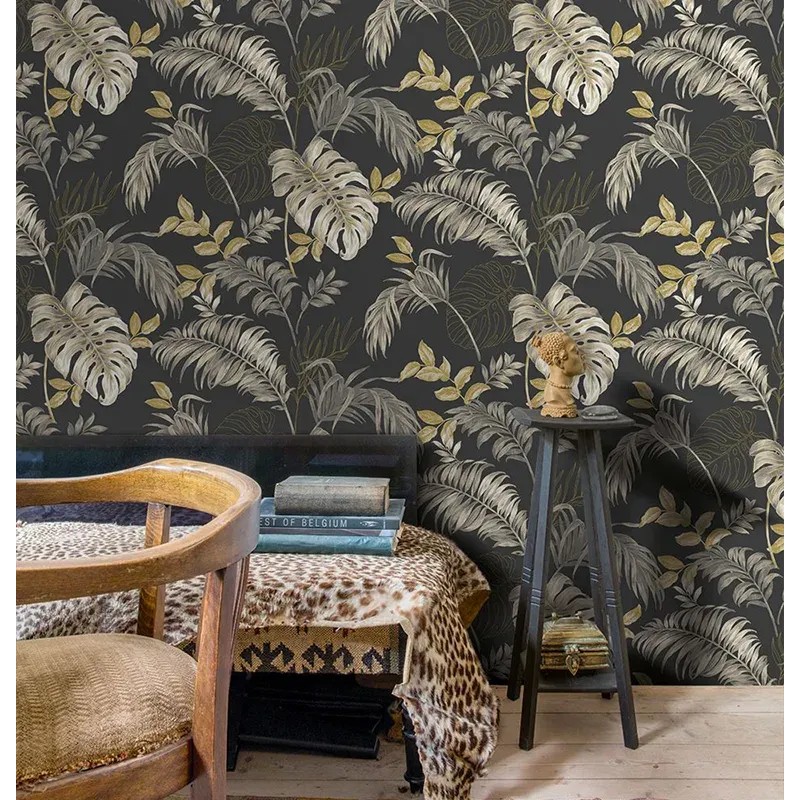 Urban Jungle exotische Pflanzen weiß-grau Tapete. Bringen Sie Stil in Ihr Interieur ideal für das Wohnzimmer. Ideal für stilvolle Raumgestaltungen.