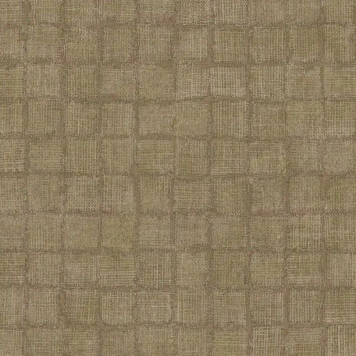Karierte Sackleinen-Tapete ethnisch taupebraun 333452 von Eijffinger, Kollektion Emerald. Rollenmaße: 52 cm x 10 Meters. Abwaschbare Vliestapete