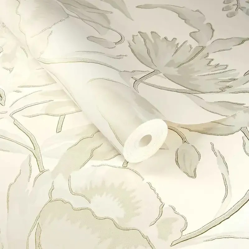 Eijffinger|Romantische Tapete mit Blumensilhouetten in Weiß Gold|Hochwertige Eijffinger|Romantische Tapete mit Blumensilhouetten in Weiß Gold|Hochwertige