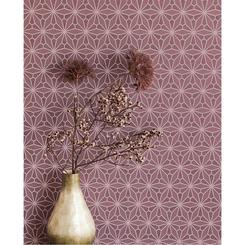 Geometrische Tapete mit orientalischem Glasfenster Muster in Rot 340145 von Eijffinger, Kollektion Gilded. Rollenmaße: 52 cm x 10 Meters. Abwaschbare Vliestapete