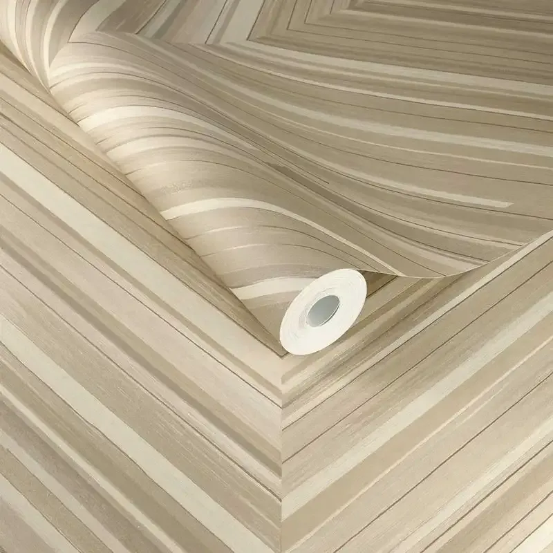 Moderne Tapete mit Fischgrätenholz Muster in Creme glänzend