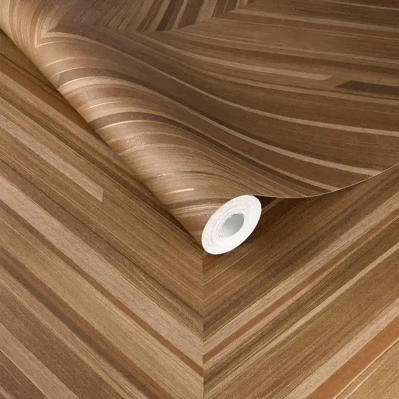Moderne Tapete mit Fischgrätenholz Muster in Hellbraun glänzend