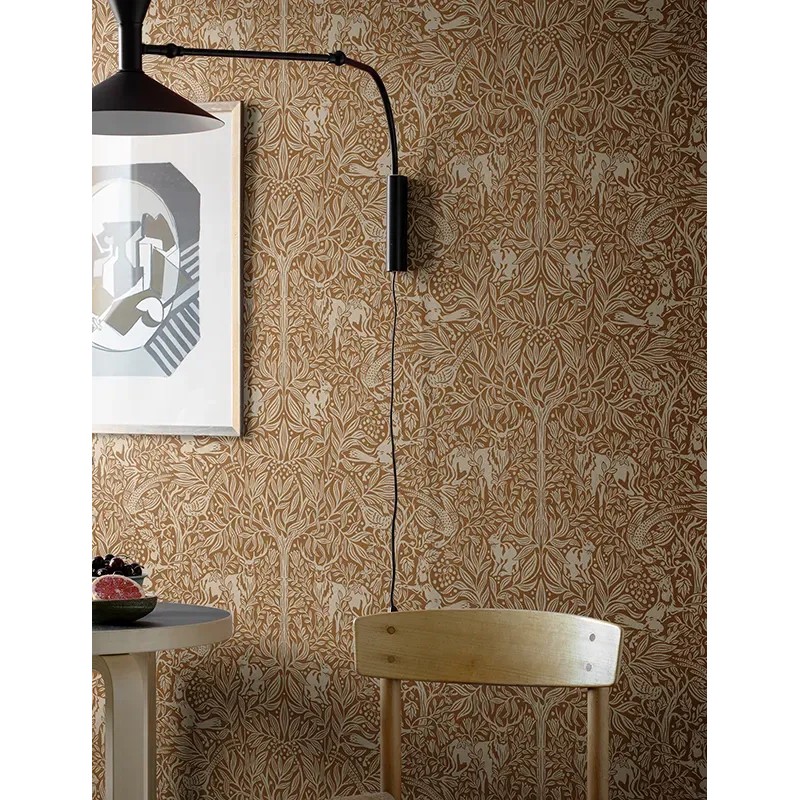Mit einer Palette von zwei dunklen Brauntönen und Beige strahlt unsere Tapete Under the Elder Tree einen klassischen Stil voller Interesse und Tiefe aus. Der schöne und heilige Holunder breitet seine Äste über die Wände aus und bietet Schatten für die Hirsche, Hasen, Fasane und Füchse, die sich in den großen Wäldern Schwedens ausruhen und spielen. Voll von Wärme und Tiefe, setzen Sie sich hin und entspannen Sie sich, während Sie die Geheimnisse und Überraschungen dieser luxuriösen Tapete erkunden. Es handelt sich um eine ideale Tapete, um eine zeitgemäße und gemütliche Ästhetik im Eingangsbereich, Wohnzimmer oder Schlafzimmer zu schaffen.