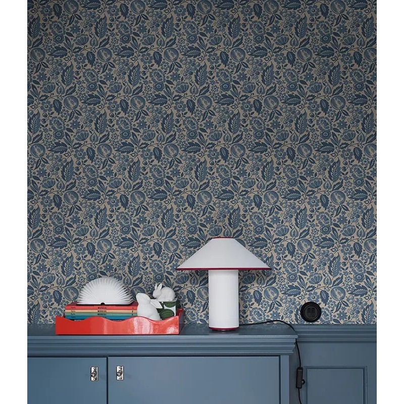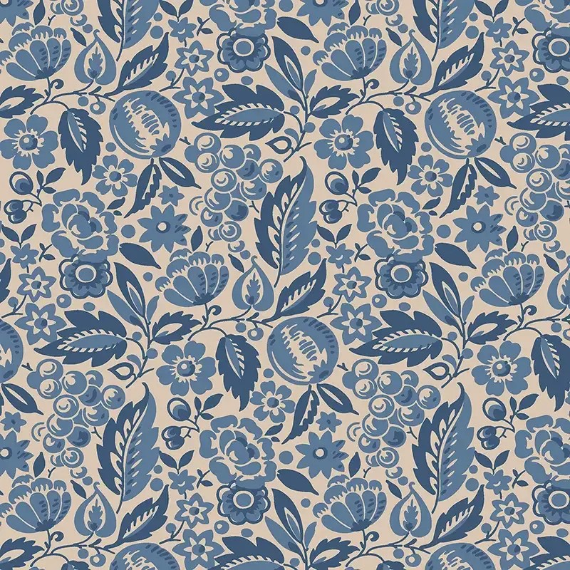 In einem Blauton über einem beigefarbenen Leinenhintergrund zeigt unsere Tapete Elise ein Muster aus Blumen und Laub, kombiniert mit Äpfeln und Beeren. Rustikal und von volkstümlicher Inspiration, aber dennoch zeitgenössisch und modern, geht das dichte Laubmuster auf das frühe 20. Jahrhundert zurück und wird mit einer traditionellen Kollagentechnik gedruckt. Platzieren Sie die Tapete Elise in Ihrer Küche, Diele oder Ihrem Wohnzimmer, um eine frische und ruhige Atmosphäre voller Tiefe und Interesse zu schaffen.