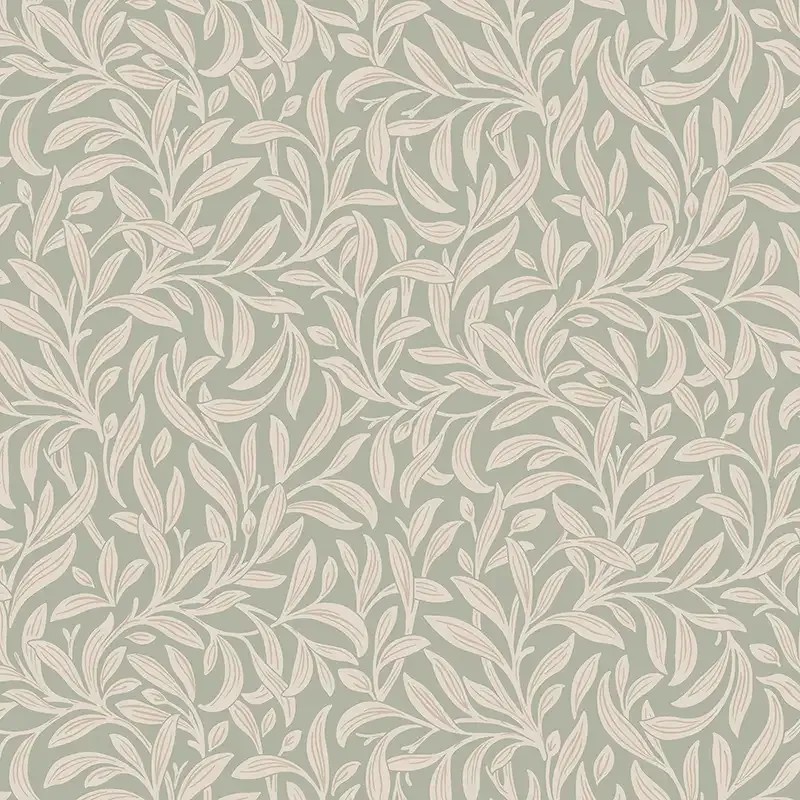 Tapete Arts and Crafts Blätter dicht pastellgrün beige