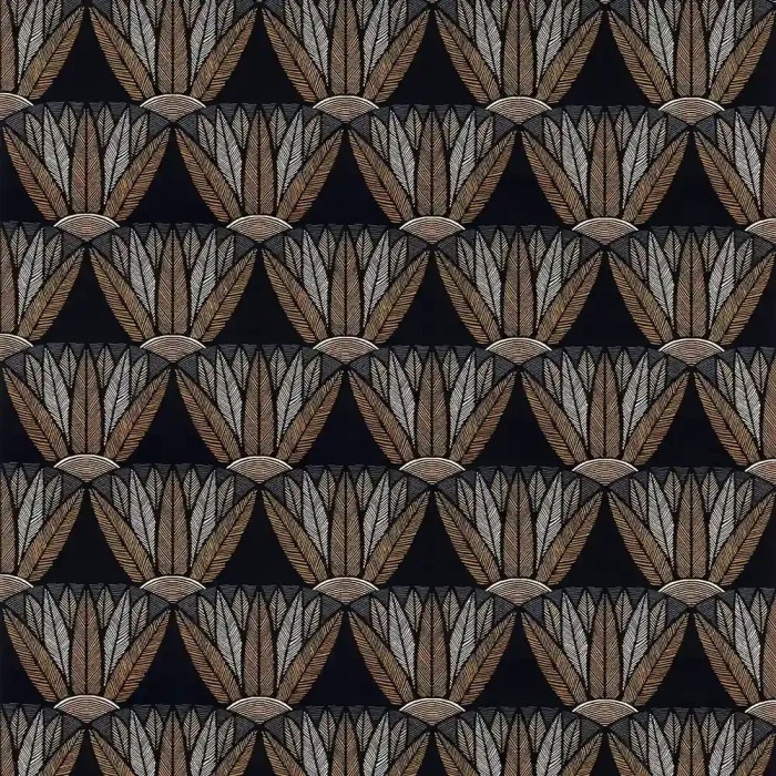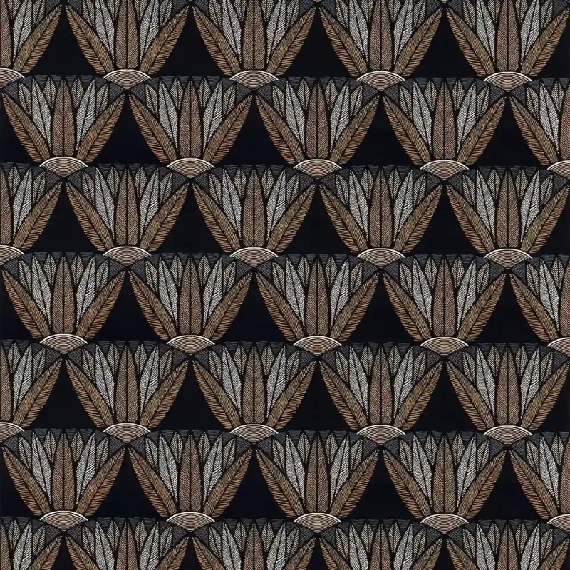 Ägyptische Lotustapete schwarz-bunt von Casamance, Kollektion Bord du Nil. Abwaschbare Vinyl-Qualität, Maße: 106 cm x 10 m.