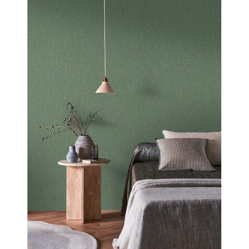 Moderne Wellenmuster Tapete grün von Casamance, Kollektion Terra Rossa. Abwaschbare Vinyl-Qualität, Maße: 70 cm x 10 m.