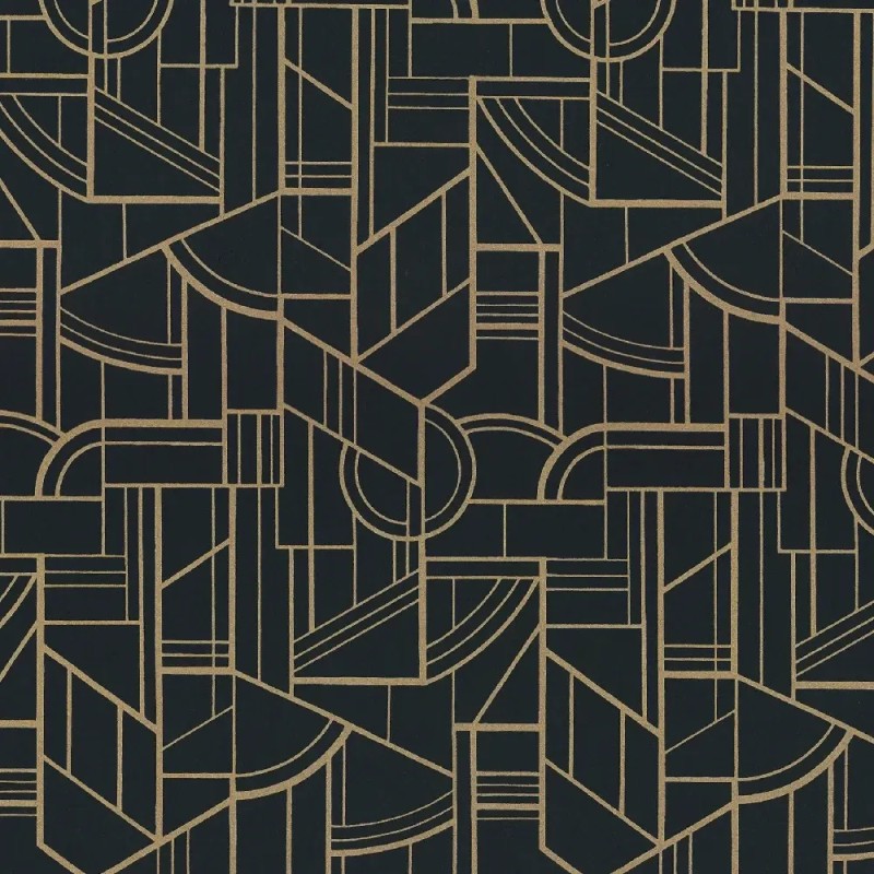 Geometrische Tapete beige mit goldenem Muster von Casamance, Kollektion Faubourg Des Lumières. Abwaschbare Vinyl-Qualität, Maße: 68 cm x 10 m.