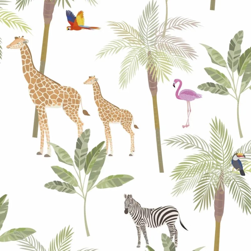 Weiße Kindertapete mit tropischen Palmen, bringt Eleganz und Persönlichkeit. Marburg Kids Walls 45882.