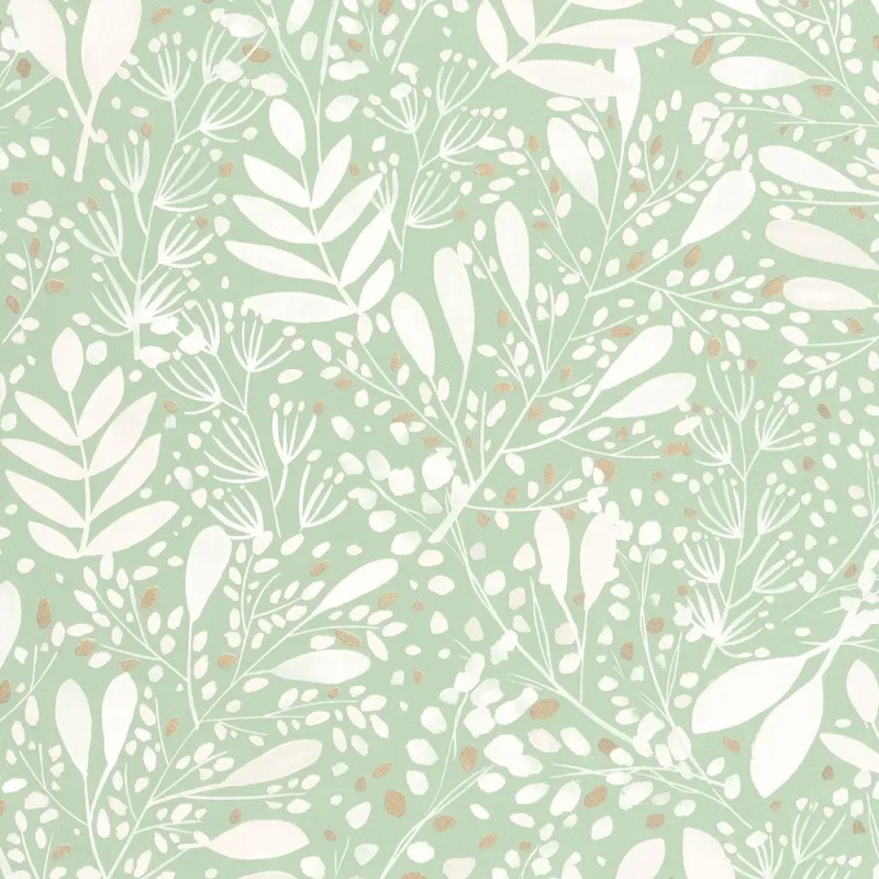 Aquarell-Blumentapete in Pastellgrün. Caselio Green Life , waschbare Vliestapete. Maße: 53 cm x 10 Meter