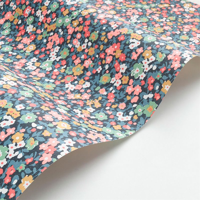 Tapete mit kleinen jugendlichen blumen, typischer liberty-stoffstil, Kalkoptik verleiht dem Raum Tiefe und Helligkeit.