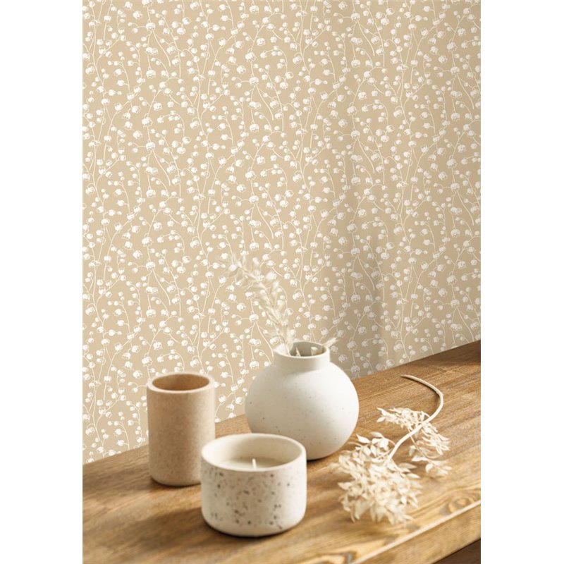 Tapete mit kleinen blumen in pastelltönen, grüne maiglöckchen, bringt gealterten Charme in moderne, minimalistische Räume.
