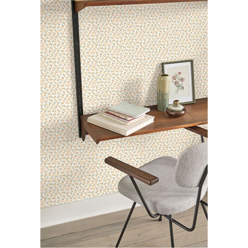 Blumentapete mit kleinen grünen tulpen, minimalistischer stil, Kalkoptik verleiht dem Raum Tiefe und Helligkeit.