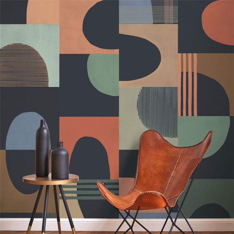 Pop-art-tapete mit geometrischen formen für moderne räume, ideal, um jedem Raum eine künstlerische Note zu verleihen.