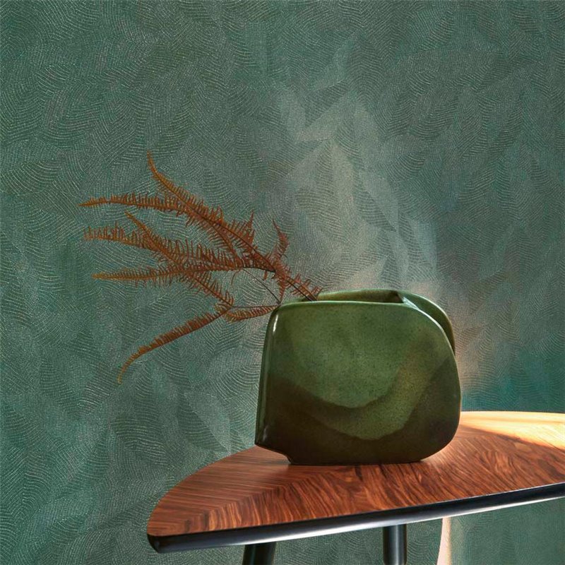 Strukturierte tapete mit überlappenden blättern in relief, in grün, ideal, um jedem Raum eine künstlerische Note zu verleihen.