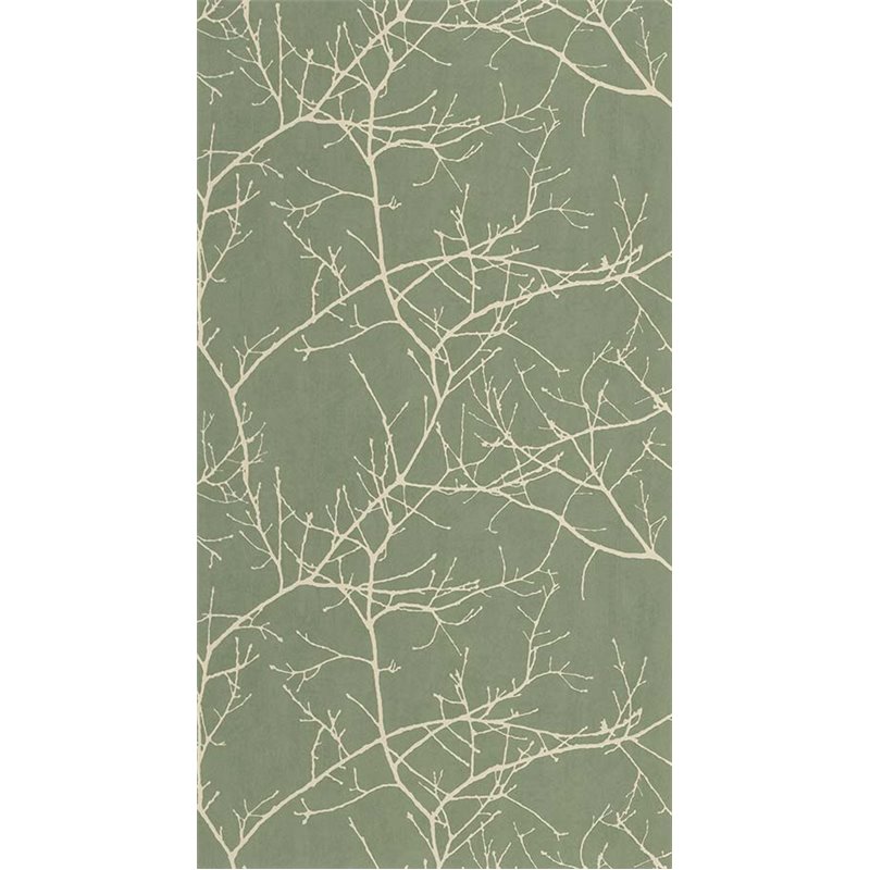 Tapete mit kahlen grünen baumzweigen im nordischen stil, eine moderne Tapete, die Kunst und Design elegant verbindet.