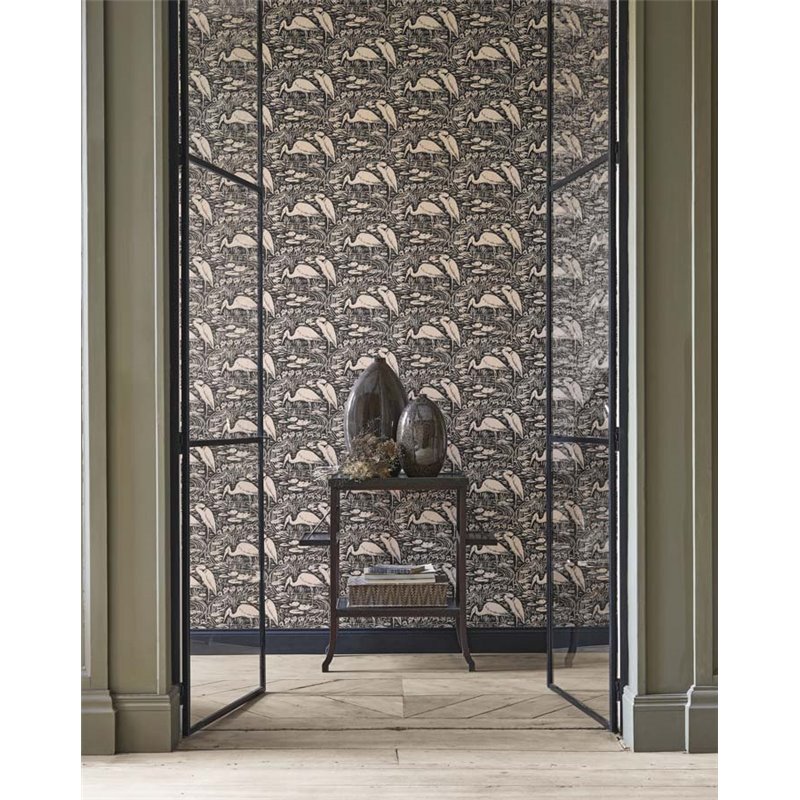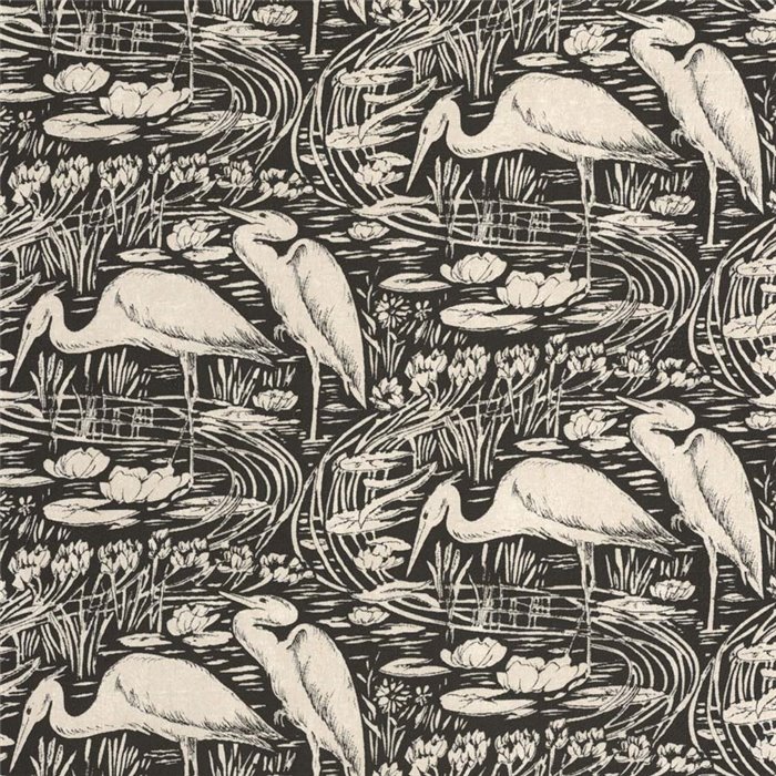 Tapete mit reihern in einer lagune, vintage-stil, eine moderne Tapete, die Kunst und Design elegant verbindet.