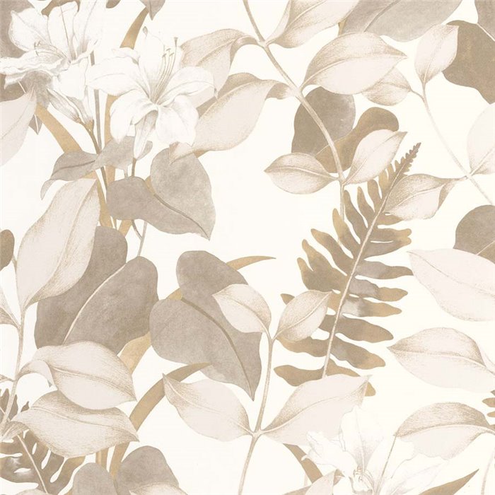 Tapete mit Blumen im orientalischen Stil, asiatische Lilien. Exotisches Blumenmuster für ein ruhiges und elegantes Wohnzimmer.