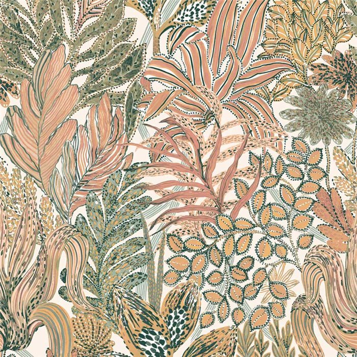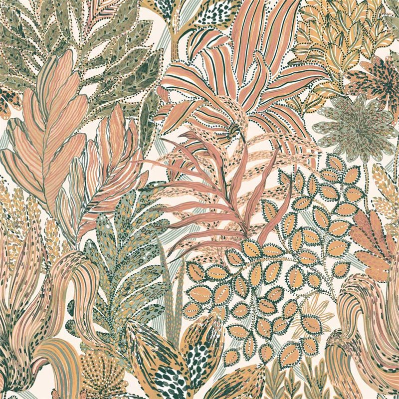 Gartenblumen Tapete bunt von Casamance, Kollektion Jardin Félicia. Abwaschbare Vinyl-Qualität, Maße: 68,6 cm x 10 m.